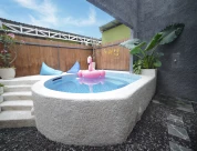 Ubu Villa HnR Farm – “Farm-filled fun, Family Comfort” is a one-bedroom villa that is affordable and can accommodate 2–4 people. Equipped with a backyard farm, guests can enjoy a fun educational experience for their little ones. Children can feed farm animals, milk goats, and even enjoy farm products directly from the source. There is also a playground as a fun alternative for children.